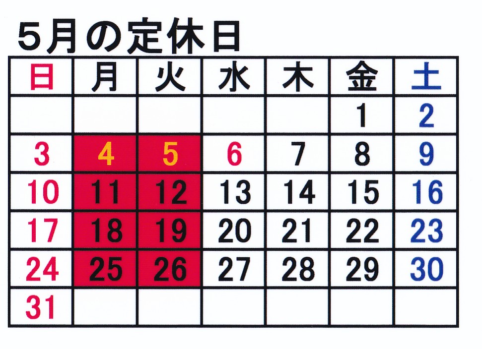 定休日のお知らせ